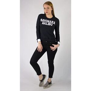 Aiko Women's Revolve Black Giacomo Sayonara Malibu Sweatshirt Size XS White Cuffs. Measurements in photos. Very good pre-owned condition. No rips, holes, or stains. Comes from smoke free environment.