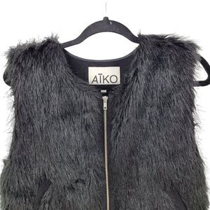 Aiko Womens Vest Faux Vegan Fur Rocker Zip Up Silk Lined Pockets Black XS