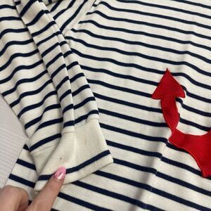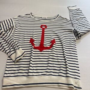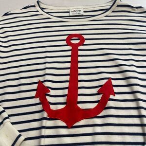 Aileen Vintage Anchor Stripe Nautical Long Sleeve Shirt Size Large
