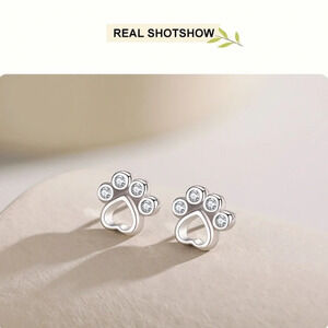 Real 925 Sterling Silver Pet Paw Footprint Stud Earrings