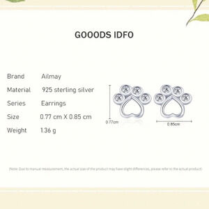 Ailmay Real 925 Sterling Silver Pet Paw Footprint Stud Earrings