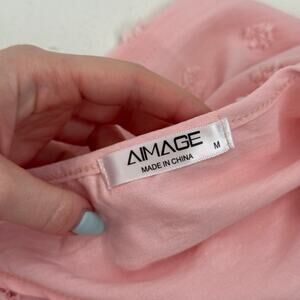 Aimage Light Pink Textured Dot Sleeveless Dress With Pockets M