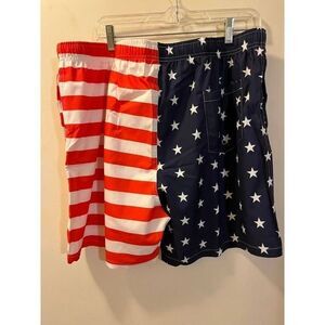 Aimage Swimming Trunks Men 2XL Multicolor Drawstring USA Flag All Print Mid Rise