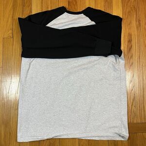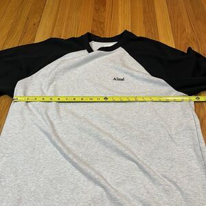Stylish long sleeve shirt by Aime Leon Dore. Features black sleeves and gray body. Comfortable and versatile. Fits like a true XXL
