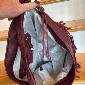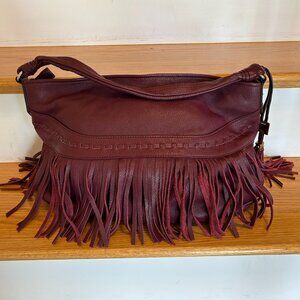 Aimee Kestenberg Burgundy Pebble Leather Fringe Hobo VERY GOOD CONDITION!