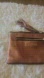 Features: The clutch is in beautiful bronze rose metallic color with gold hardware. It has zippered pocket in front, snap closure pocket on the back. Inside has zippered pocket and open pocket.