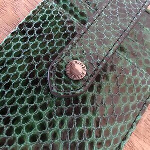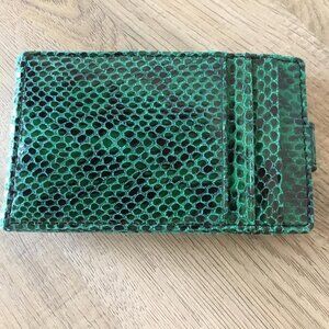 Aimee Kestenberg is known for luxury and this card holder features a striking green snakeskin texture,