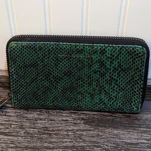 Aimee Kestenberg Green Snakeskin Wallet/Card Holder Zip Closure