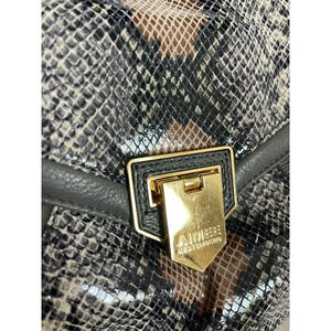 Aimee Kestenberg Leather Snakeskin Print Shoulder Bag Purse Gray 12X15 Gold Tone