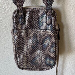 Aimee Kestenberg Phone Bag Purse Iridescent Reptile Pattern Leather Crossbody