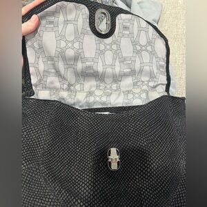 Aimee Kestenberg Rocco Lizard Embossed Shoulder Purse in Black. Silver metal hardware closure.