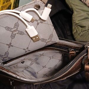 Aimee Kestenberg metallic leather wristlet w.chargers