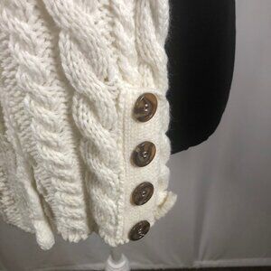 This gorgeous Aimee Lynn ivory knit scarf brings cozy elegance to any fall & winter wardrobe. Designed in a soft, cable-inspired acrylic knit, this piece features a unique button-hem detail that allows it to be worn open, wrapped, draped, or styled as a shawl. A beautiful versatile accessory — lightweight yet warm, chic yet easy to wear.