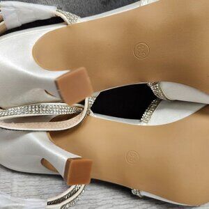 Ainrock Women Size 8.5 Rhinestone Heels Sparkly Wedding Closed Pointed Toe White