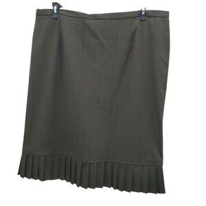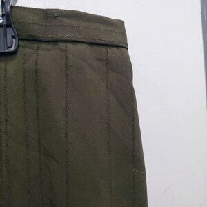 Ainsley & Aidan Woman's Olive Green Pinstripe Ruffle Hem Midi Skirt Plus 20W