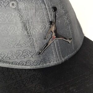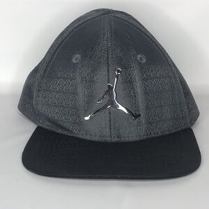 Charcoal gray with “23” printed with Jumpman embellishment on front of cap. Black bill.