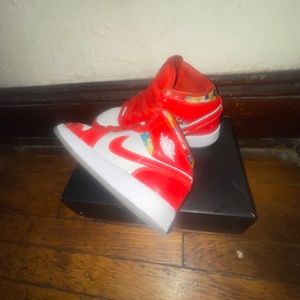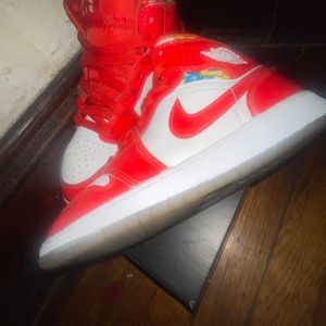These are the Nike air Jordan 1 mid red patent geometric print