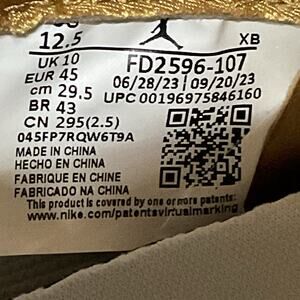 Air Jordan 1 High Metallic Gold Medal White Size 12.5 FD2596-107