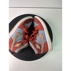 The product is a pair of Air Jordan 1 Mid Denim Red sneakers in size 13c, featuring a mid-top silhouette and made with denim upper material. These sneakers are part of the Air Jordan product line and were released in 2021. With a bold red color and iconic Jordan brand, these athletic shoes are designed for teens and offer both style and comfort for sports or casual wear.