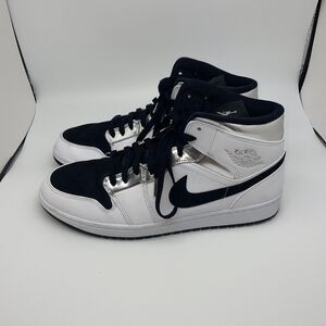 No Box Size 11.5 - Air Jordan 1 Mid SE, Think 16 Alternate, White/Metallic Silver/Black.