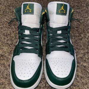 The Air Jordan 1 Mid Sonics 2021 is back in a Seattle Supersonics themed colorway: noble green, pollen, and white.