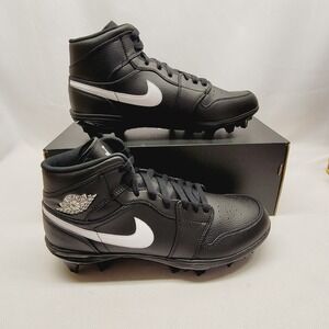 Air Jordan 1 Mid TD Football Cleats Men's Size 10 Black White Swoosh FJ6805-001