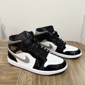 Air Jordan 1 Mid White Black Metallic Gloss Men Sneakers Size US 9