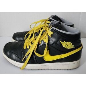 Air Jordan 1 Mid Yellow Retro Black 2014 Nike 554724-070 Mens Size 9.5