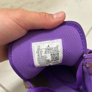 Boys youth size 6 Air Jordan Mocha. This is a rare color pattern and the shoes are in great shape. Son hardly wore them and his foot grew too fast. He did spill a little bit of orange paint on the inside of one (you can see in pictures) but he was able to clean it off pretty well and it's on the inside so it's even less noticeable. Let me know if you have any questions.