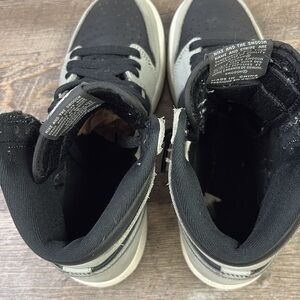 Excellent previously owned, gently worn condition. The upper of the Air Jordan 1 Shadow 2.0 is made of a black leather base with Light Smoke Grey overlays. A classic Wings logo appears on the lateral ankle wrap while a woven Nike Air label is stitched atop the tongue to complete the look.
