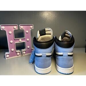 The upper of the Air Jordan 1 High University Blue is composed of a white and black tumbled leather upper with University Blue Durabuck overlays. Following traditional Jordan 1 detailing, a Nike Air woven label is located on the tongue and an Air Jordan Wings Logo is printed on the ankle. A white midsole and University Blue outsole complete rejuvenated classic.