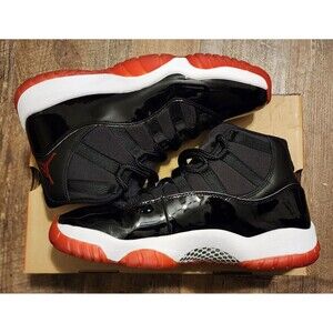 The product is a Air Jordan 11 Retro Size 10.5 US in the color Black/True Red-White. Released in 2019, this high top sneaker features a patent leather upper and belongs to the Air Jordan product line. With a retro theme, this athletic shoe showcases the iconic Air Jordan 11 model and is designed for men who appreciate style and performance. Made in China, this shoe combines quality craftsmanship with a classic design that is sure to make a statement in any sneaker collection.