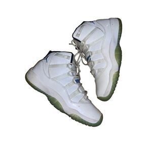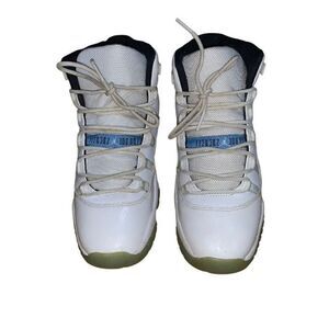 White, legend blue and white 11 Retro sneakers. Lace up. Minor flaws. Size: 6Y. Preowned in good condition.