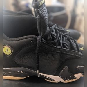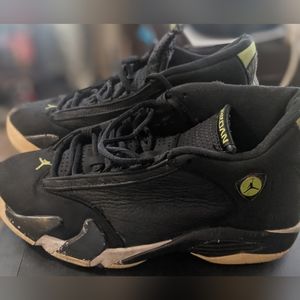 Air Jordan 14 XIV Size 9 Color White, Black, & Lime Green Gently Used... Pay Attention to ALL photos. Some Flaws!!!
