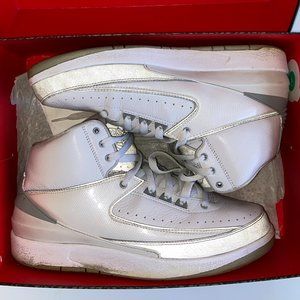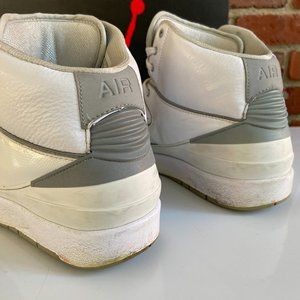 SIZE 10.5 Air Jordan 2 Retro '25th Anniversary’. USED. Bought these a while back, and I’m clearing out the closet now. I recently gave the shoes and the laces a moderate cleansing, but there are still some sections on the midsole that I was hesitant to brush since the shoes were released in 2010 and I saw some noticeable paint cracking. If you do not mind the cracking, the shoes are clean and ready to wear. Comes with a Jordan 3 box I found lying around the house. Feel free to contact me anytime