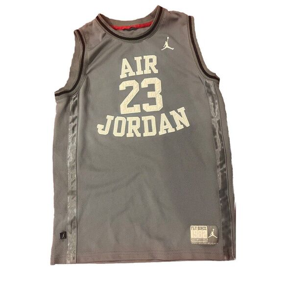 Air Jordan 23 Basketball Jersey Boys Size Large Gray White Black