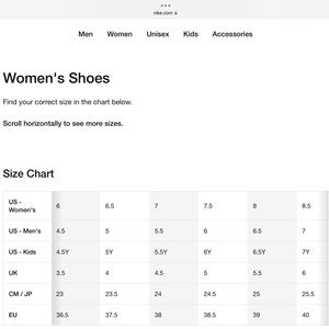 * Official Nike link: https://www.nike.com/size-fit/womens-footwear