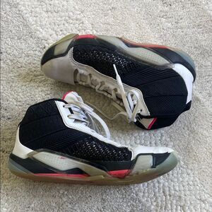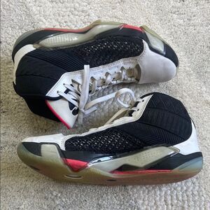 Stylish high-top sneakers in white and black. Perfect for casual wear.
