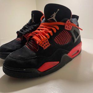 Thanks for taking a look at our listing. This is a pair of Air Jordan 4 Retro Red Thunder. The size is 8.5. The shoes are in good condition. They are used and we don't have the box any longer.