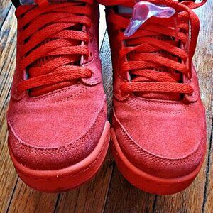 Wicked pair of Air Jordan 5 Retro in glorious red suede, stylishly unisex!