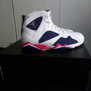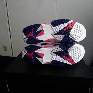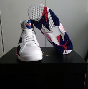 Ready to ship. Item is a pair of new, dead stock authentic Air Jordan Retro 7 white, red and blue in a men's size 8.5. This Jordan 7 released in 2016 and are guaranteed real. The item comes with the original box and receipt. There are NO signs of wear as seen in the pictures and more pictures are available upon request. Ready to ship upon payment.