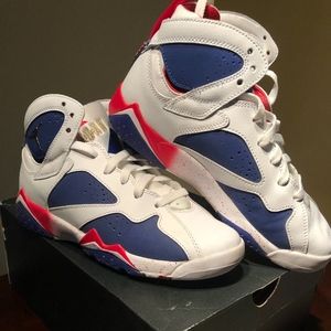 Air Jordan 7 Retro BG - White / Metallic Gold, Blue and Red
