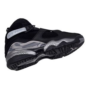 The Air Jordan 8 Retro WNTR sneakers in Youth size's feature a black suede upper with a colorblock design in gunsmoke and metallic silver accents. These high-top sneakers have a lace-up closure and a standard shoe width, suitable for various activities like basketball, running, and cross-training. With a rubber outsole and fabric lining, these sneakers offer comfort and durability. The retro-themed design and signature Air Jordan product line make these shoes a stylish and functional choice for casual and activewear occasions in all seasons.