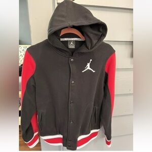 Air Jordan Boys Varsity Jacket Size L/G Red Colorblock Logo Snap Hooded Pockets