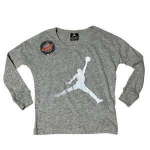 Stylish and sporty, this Jordan Jumpman long sleeve tee features the iconic reflective Jumpman logo perfect for everyday wear or active play. Crafted with a soft cotton-blend fabric for comfort and durability, this shirt brings authentic Nike quality to your little ones wardrobe.