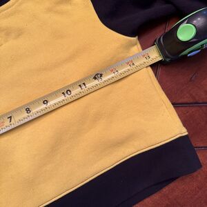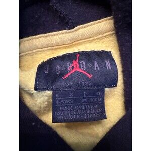 The Air Jordan Hoodie Tour Yellow Colorblock Long Sleeve Sweatshirt in size 4-5 years is a stylish and comfortable activewear option for young boys. Made from a blend of polyester and cotton with a fleece fabric type, this pullover hoodie features a classic crew neck and long sleeves, perfect for the winter, fall, and spring seasons. The vibrant yellow colorblock design with the iconic Jordan logo accents adds a touch of vintage flair to the overall look, making it a standout piece in any child's wardrobe. Ideal for running and jogging activities, this hoodie is both practical and fashionable for active kids.