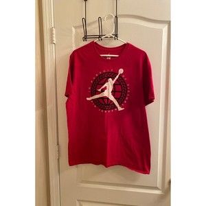 JORDAN “Air Jordan in Pursuit of Victory” comes your way in colors of Brilliant Red with Black leaves bordering the center of the shirt with Michael Jordan completely front and center as if he were dunking the basketball into the net.