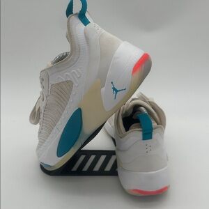 Air Jordan - Jordan Luka 1 PF 'Legend of 7' Mens size US 9.0. These Jordan athletic shoes feature white upper with teal accents. Comfortable and durable design. Great clean preloved condition. BNSHM004
