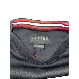 The Air Jordan Men's T-Shirt in black, size 3XL, is an activewear top designed for men who wear oversized sizes. Made by the Jordan brand, this shirt is part of the Air Jordan product line, known for its quality and style. Perfect for casual wear or as a statement piece for basketball enthusiasts, this t-shirt is a versatile addition to any wardrobe, showcasing the iconic Air Jordan logo and offering a comfortable fit for those who need a larger size.