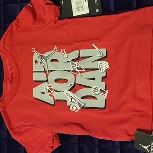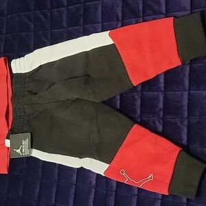 NWT Air Jordan 2 piece set! Stylish Air Jordan toddler outfit. Red top with bold logo. Black and red pants with white accents. BRAND NEW AND IN EXCELLENT CONDITION!